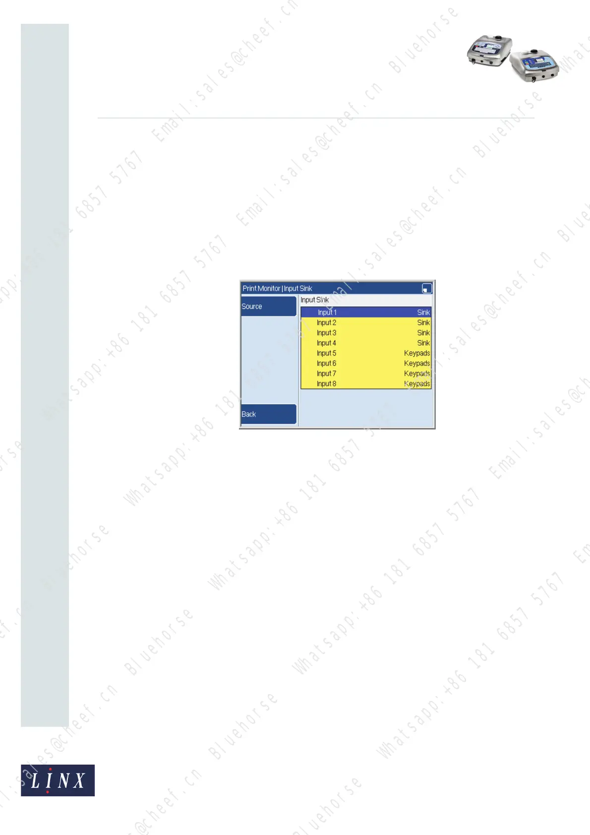 the inputs 1 to 4. If you highlight any of the other inputs (5 to 8), only the Back key