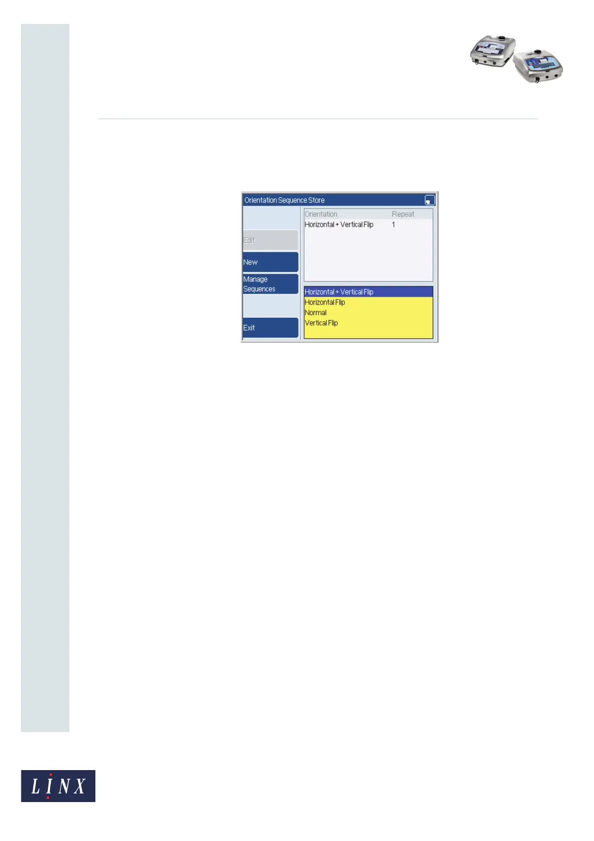 orientation sequences shown in Figure 4. The Manage Sequences key is always available