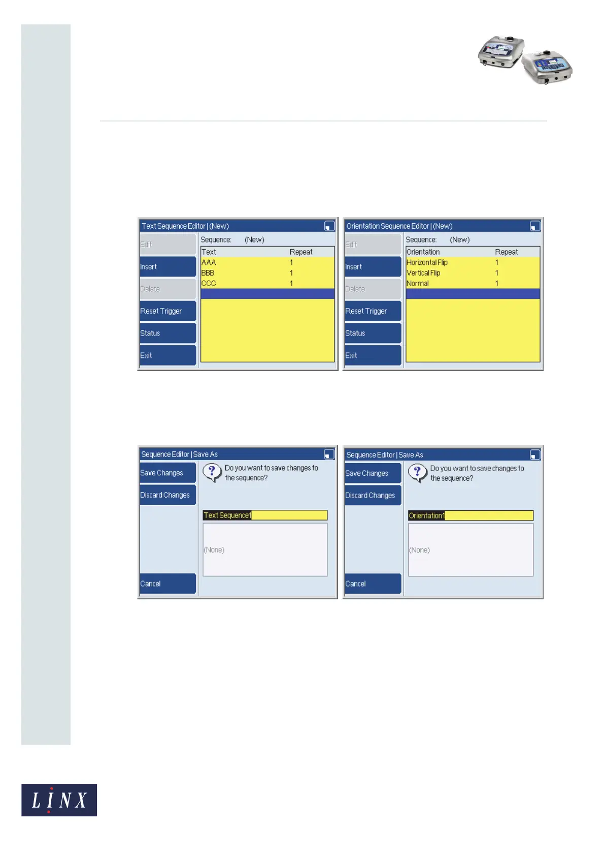 To save your sequence, press the Exit key. The printer displays one of the following pages.
