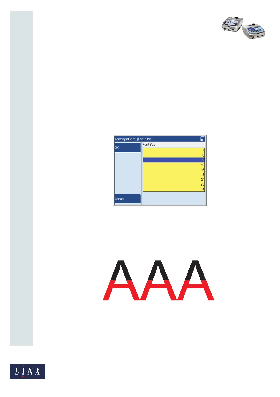 NOTE: If you set a font size that is more than the height allowed by the message type, parts