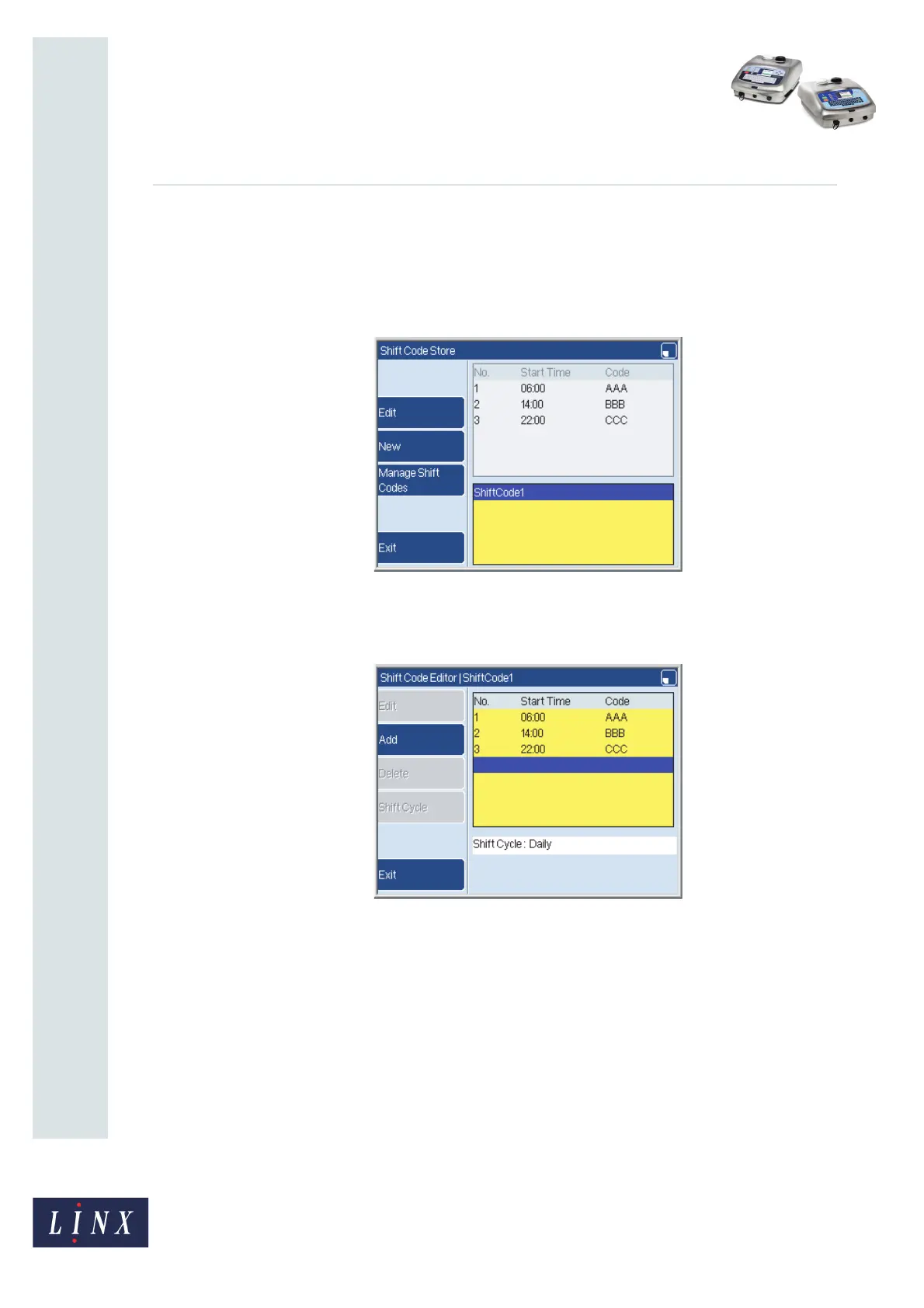 required shift code and press the Edit key. The printer displays the Shift Code Editor page.