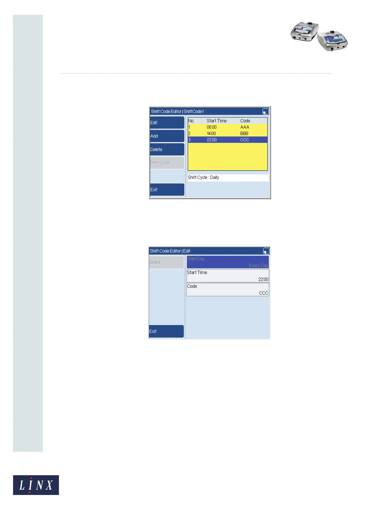 Figure 18. Shift Code Editor page: ShiftCode1