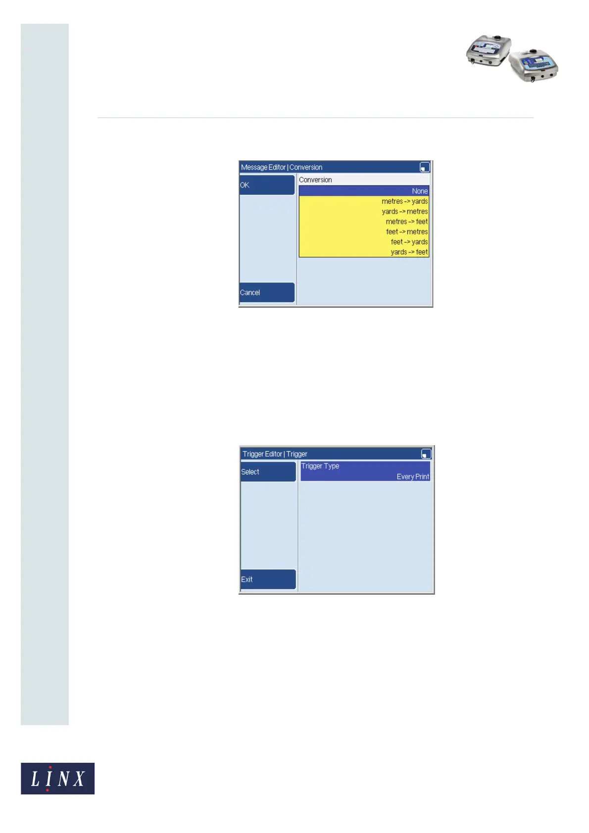 When you select either the Next Trigger option or the Reset Trigger option, the printer