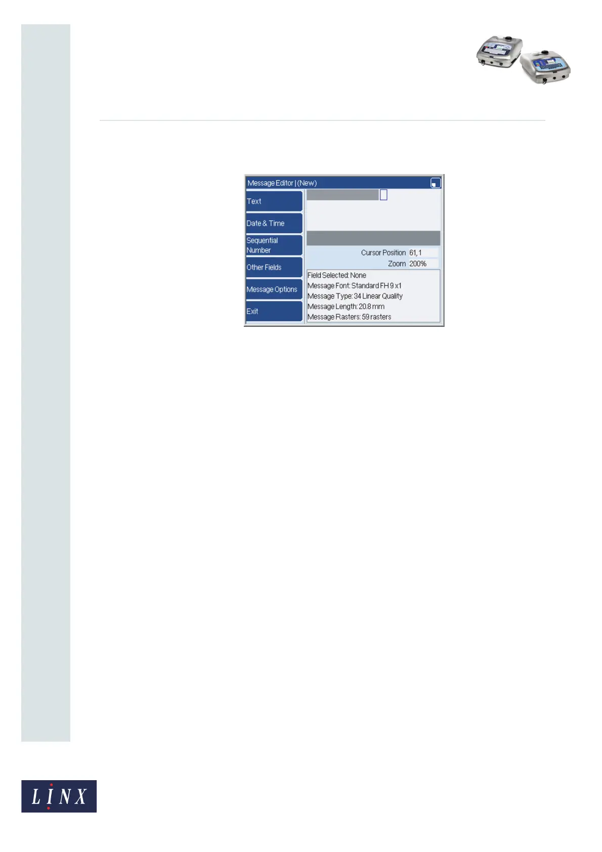 NOTE: The Message Editor page shows a grey box to indicate the size of the field.