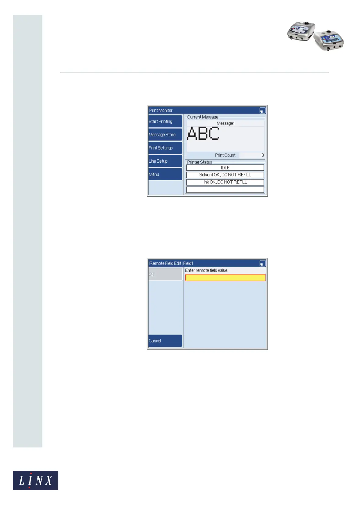 Enter the required data then press the OK key to return to the Print Monitor page. The