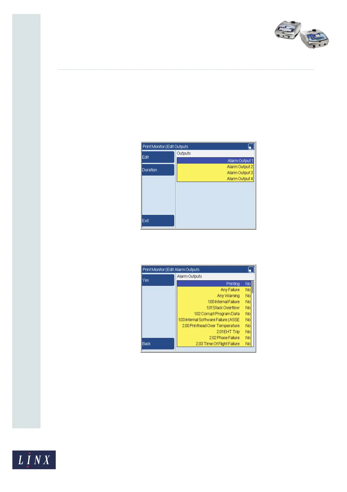 1 At the Parallel I/O page, select the Alarm Outputs option to display the following