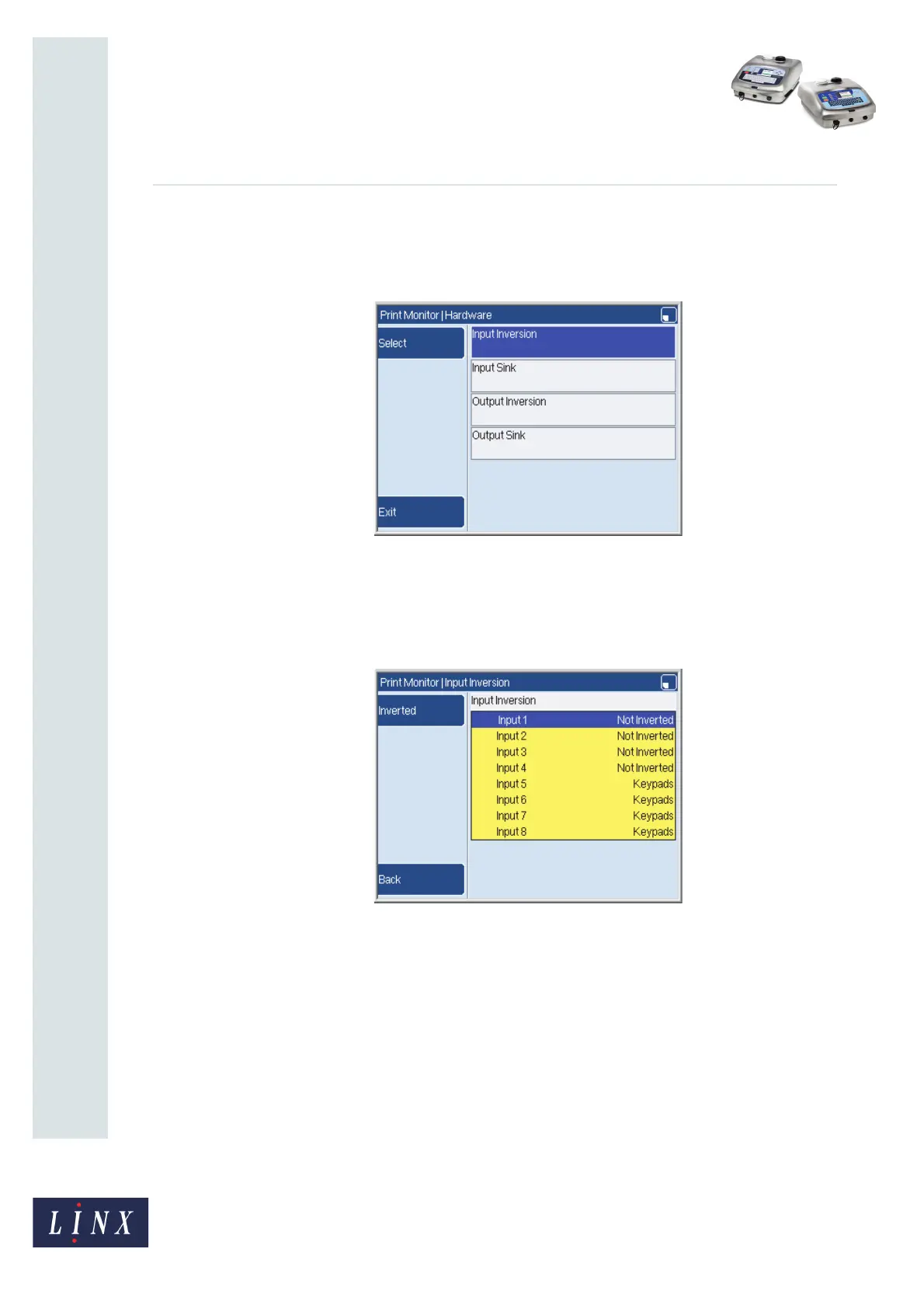 2 Press the Inverted key to change the polarity of the highlighted input to ‘Inverted’.