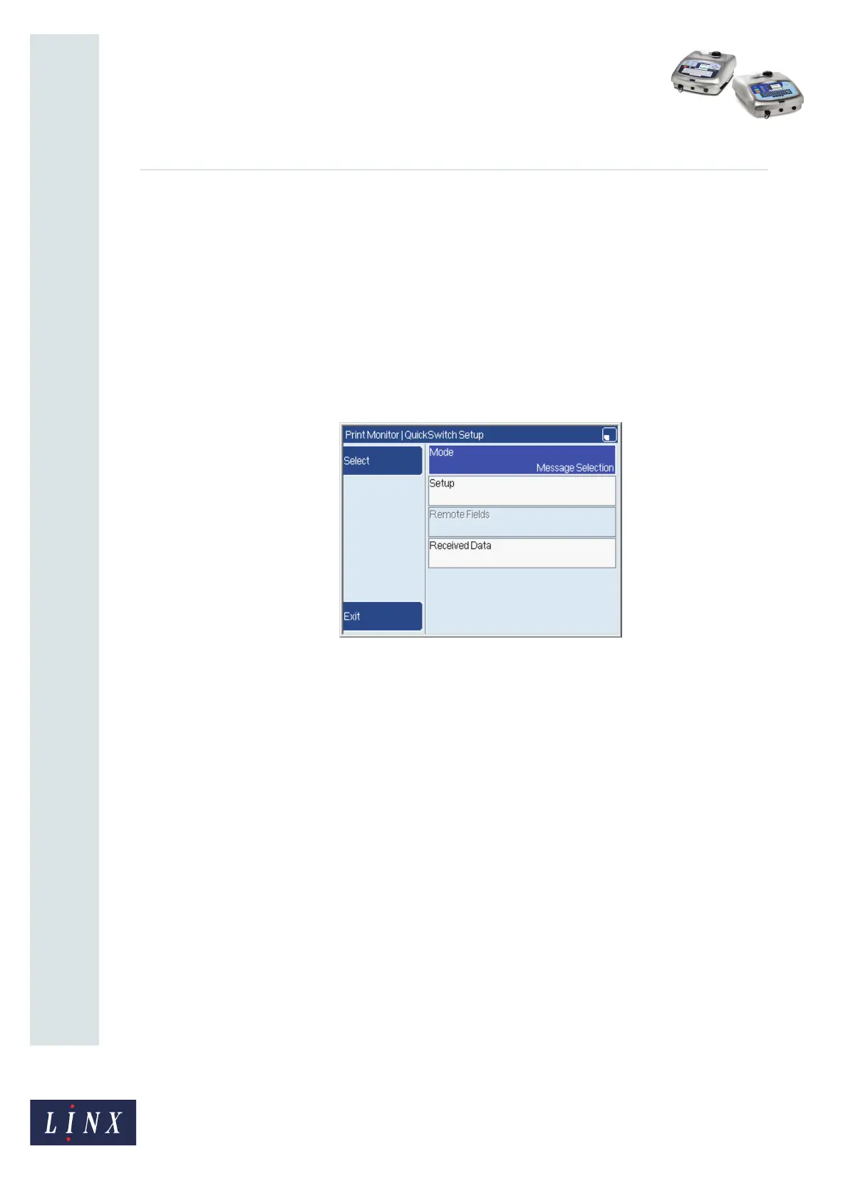 The 5900 and 7900 printers use QuickSwitch for message selection or remote field selection.