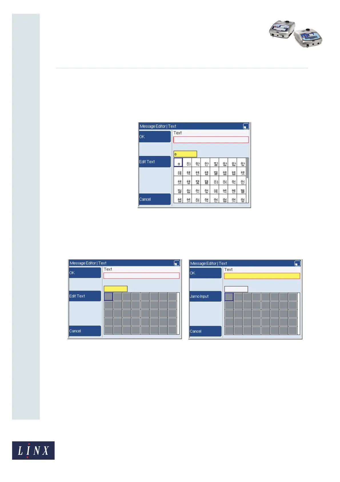 Figure 27. Korean character selector: (a) Jamo Input mode and (b) Edit Text mode