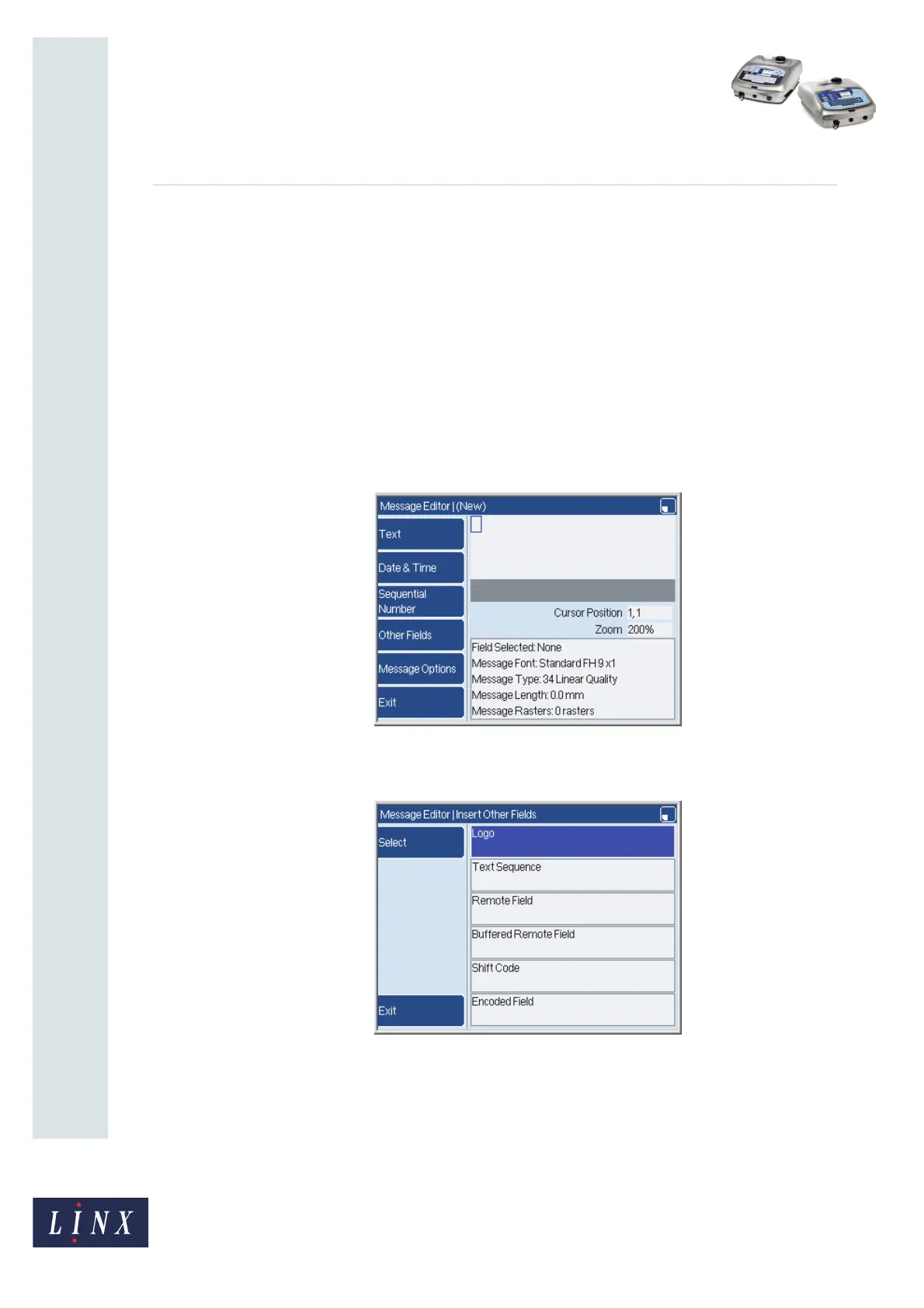 2 Press the Other Fields key to display the Insert Other Fields page.