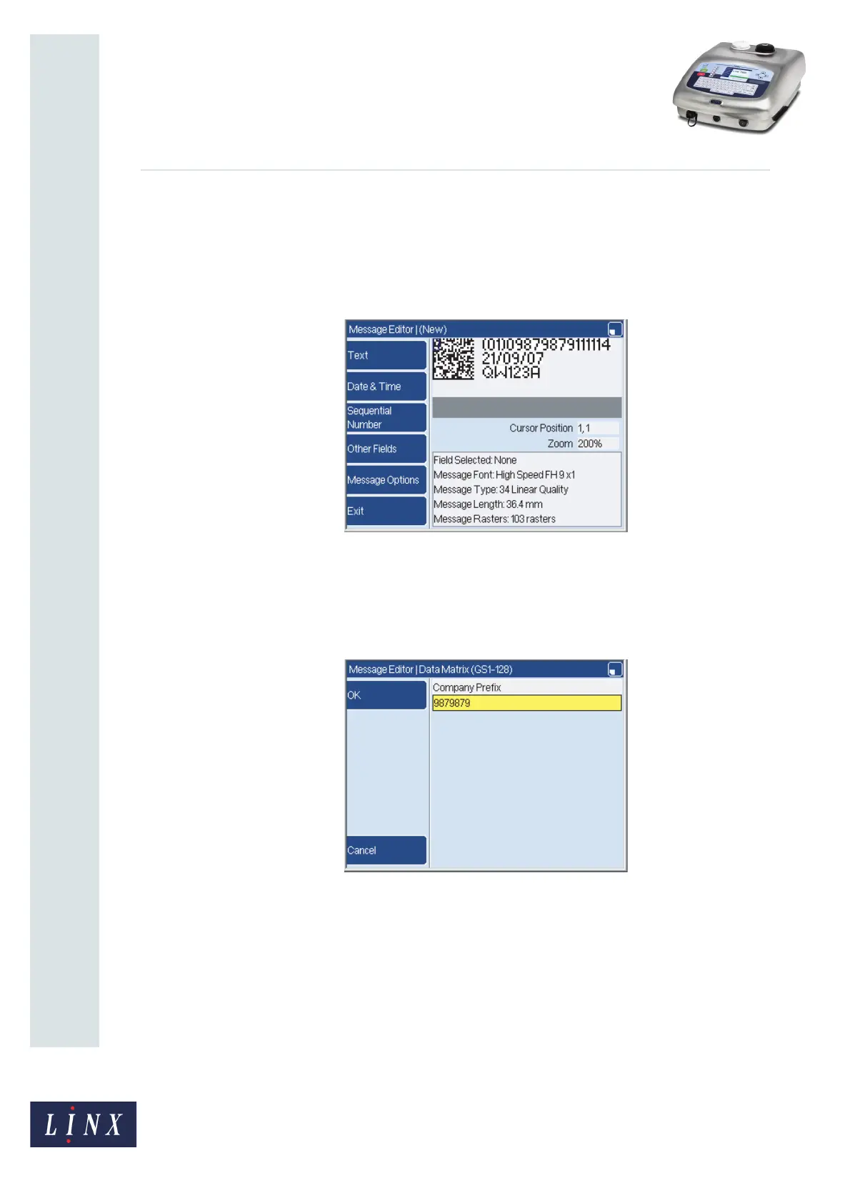 Figure 32. Data Matrix (GS1-128): Company Prefix page