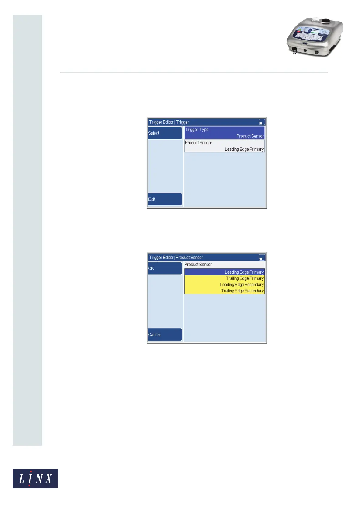 The printer resets the schedule when the primary product sensor detects the leading edge