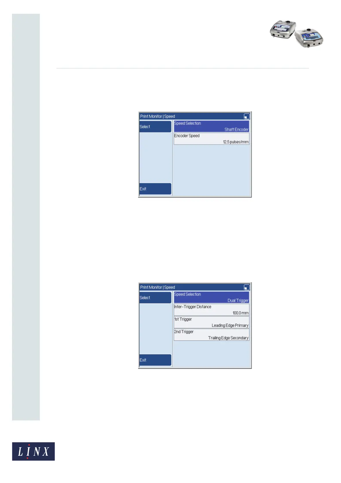 The Dual Trigger mode is like the Calculate Line Speed function and the trigger options on