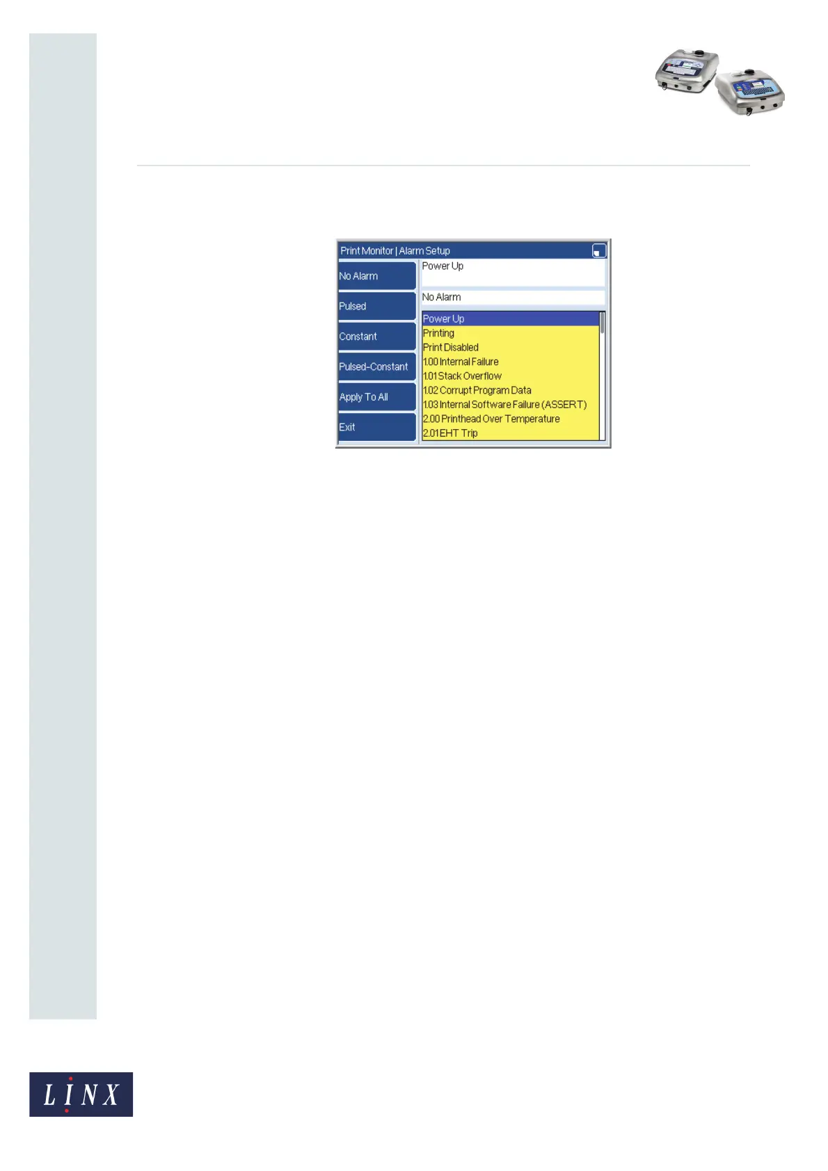 use only the ‘Pulsed’ setting or the ‘No Alarm’ setting. The Apply To All key does