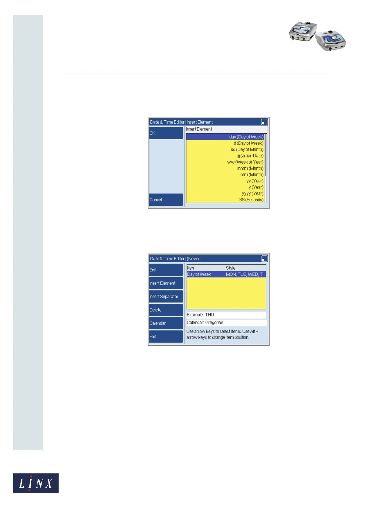 3 To insert the first element of your format, press the Insert Element key. The printer