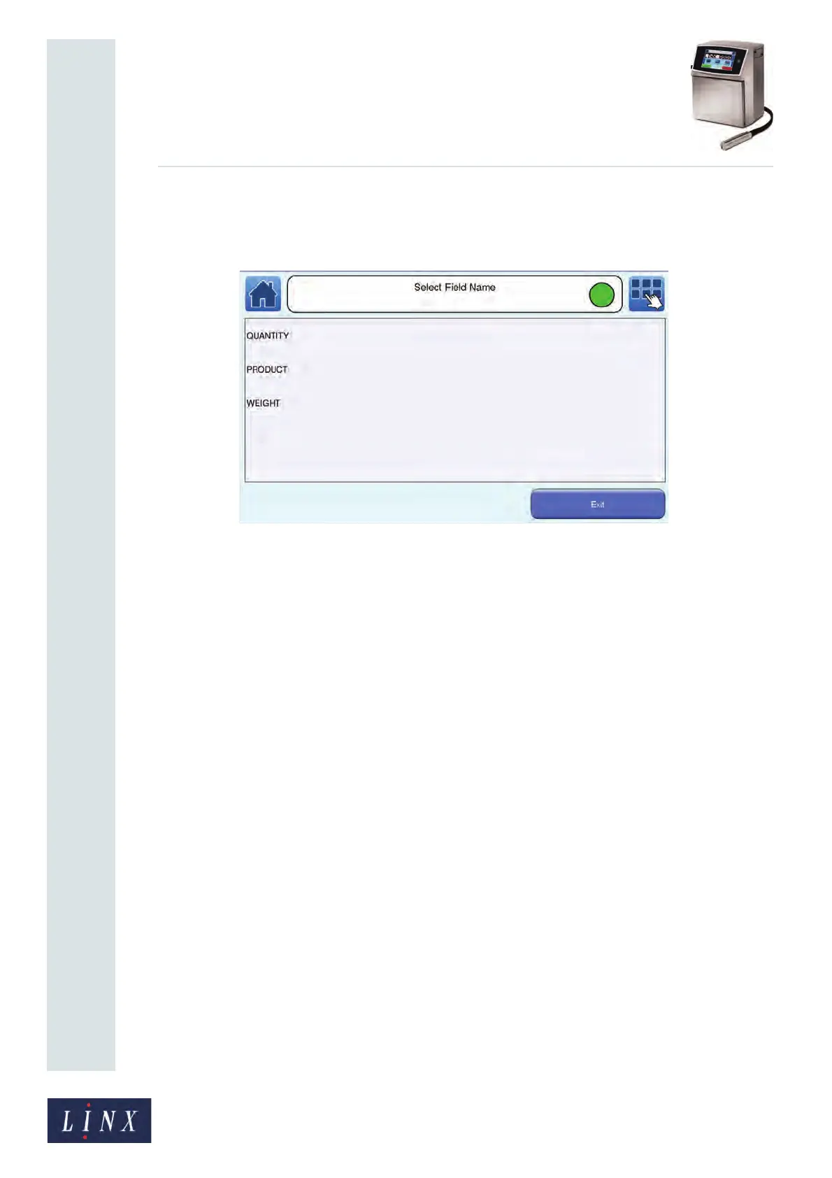 selected field (up to a maximum of 255 characters). The printer uses this value to