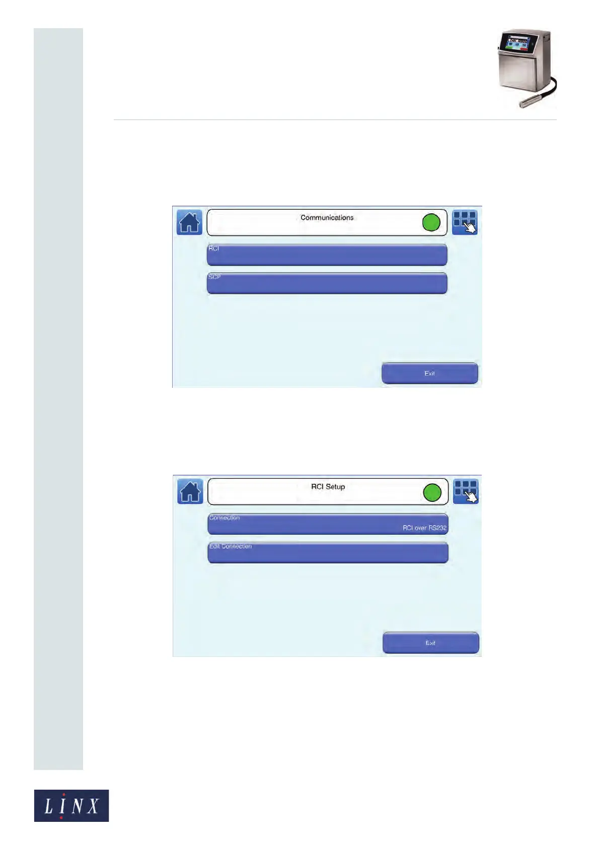 Ethernet or RS-232 parameters for RCI (see below) and SCP (see ‘SCP setup’ on page 157).