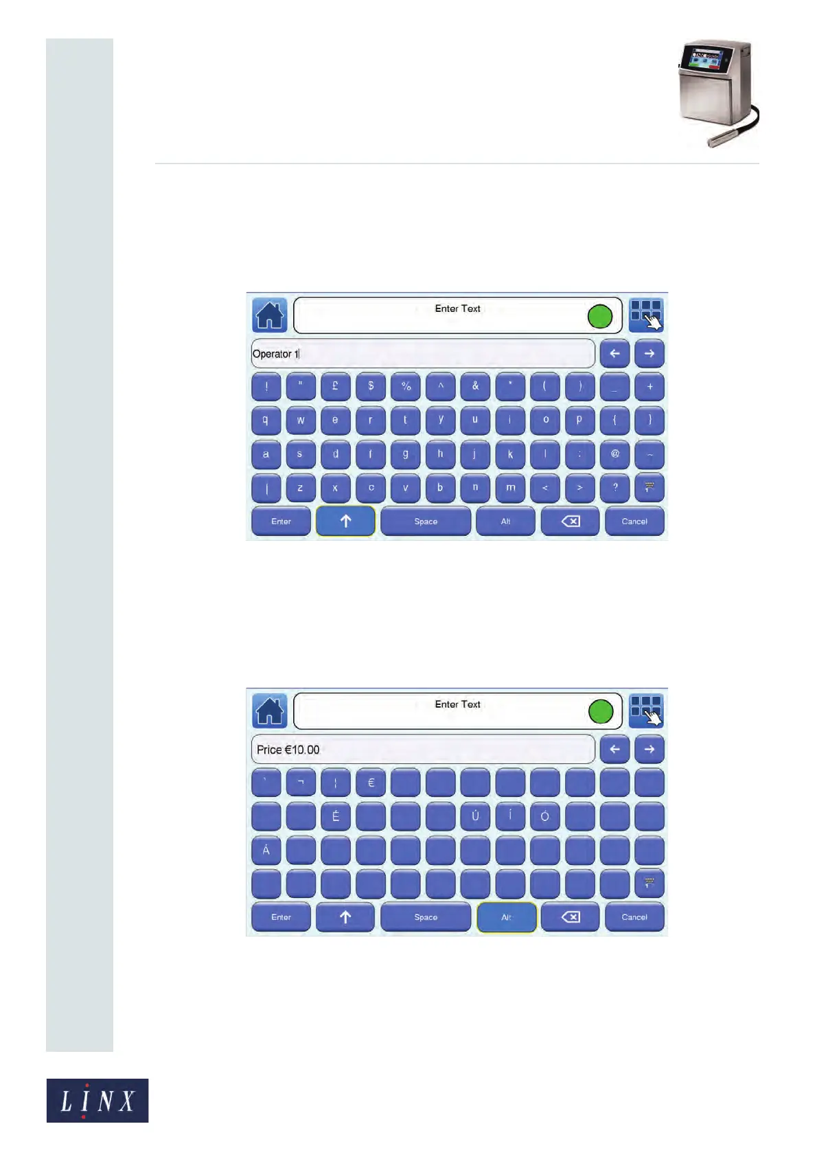 Touch the Alt button to access the extended character set for the current selected keyboard.