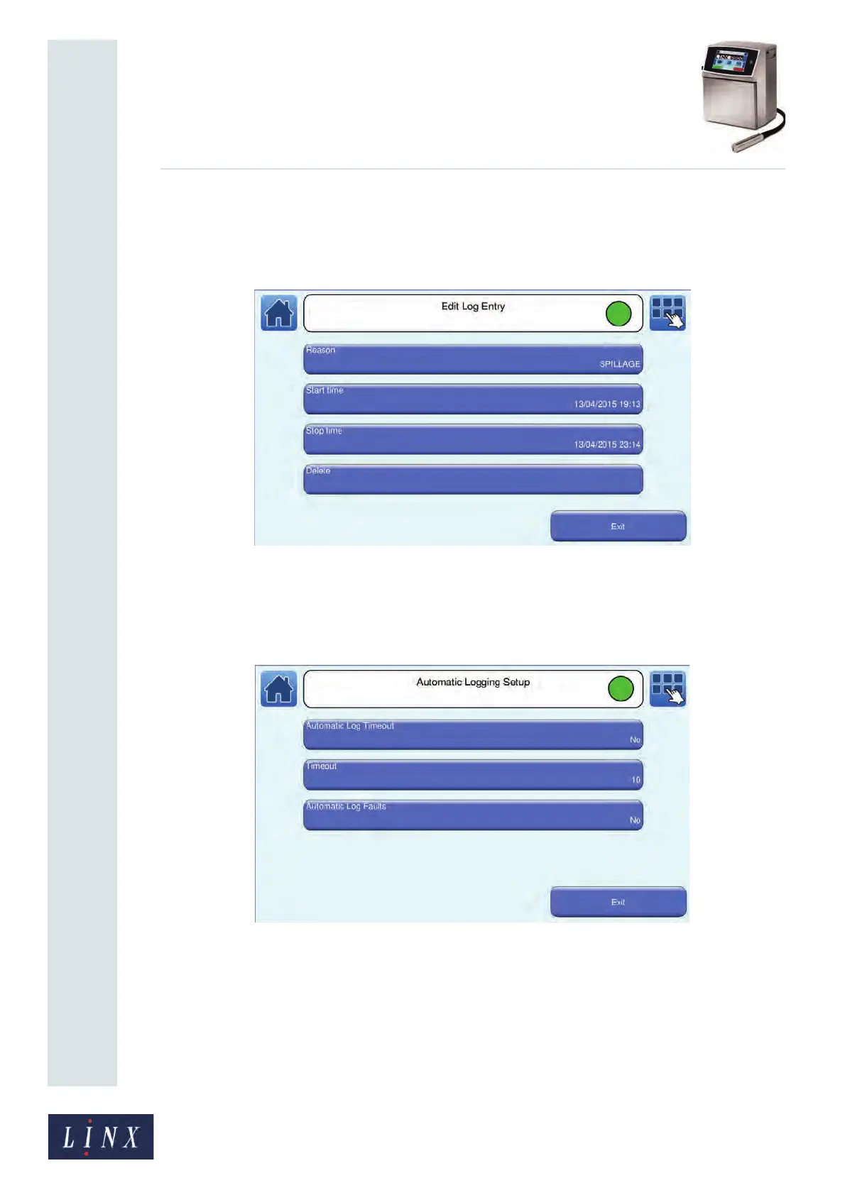 downtime. Touch an entry to display the Edit Log Entry screen, where you can edit or