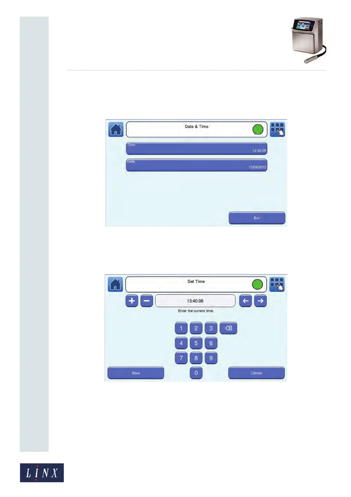 NOTE: To set the date and time, make sure that the printer is not in the ‘Printing’ state.