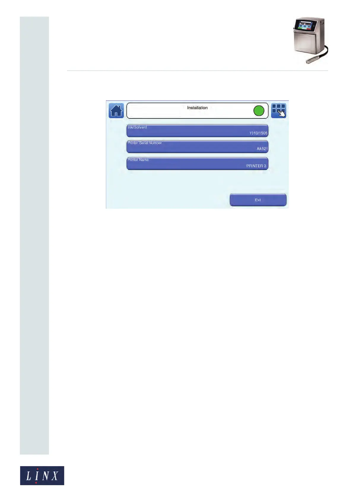 printer, and the touch the Enter button. The printer displays the Installation screen with