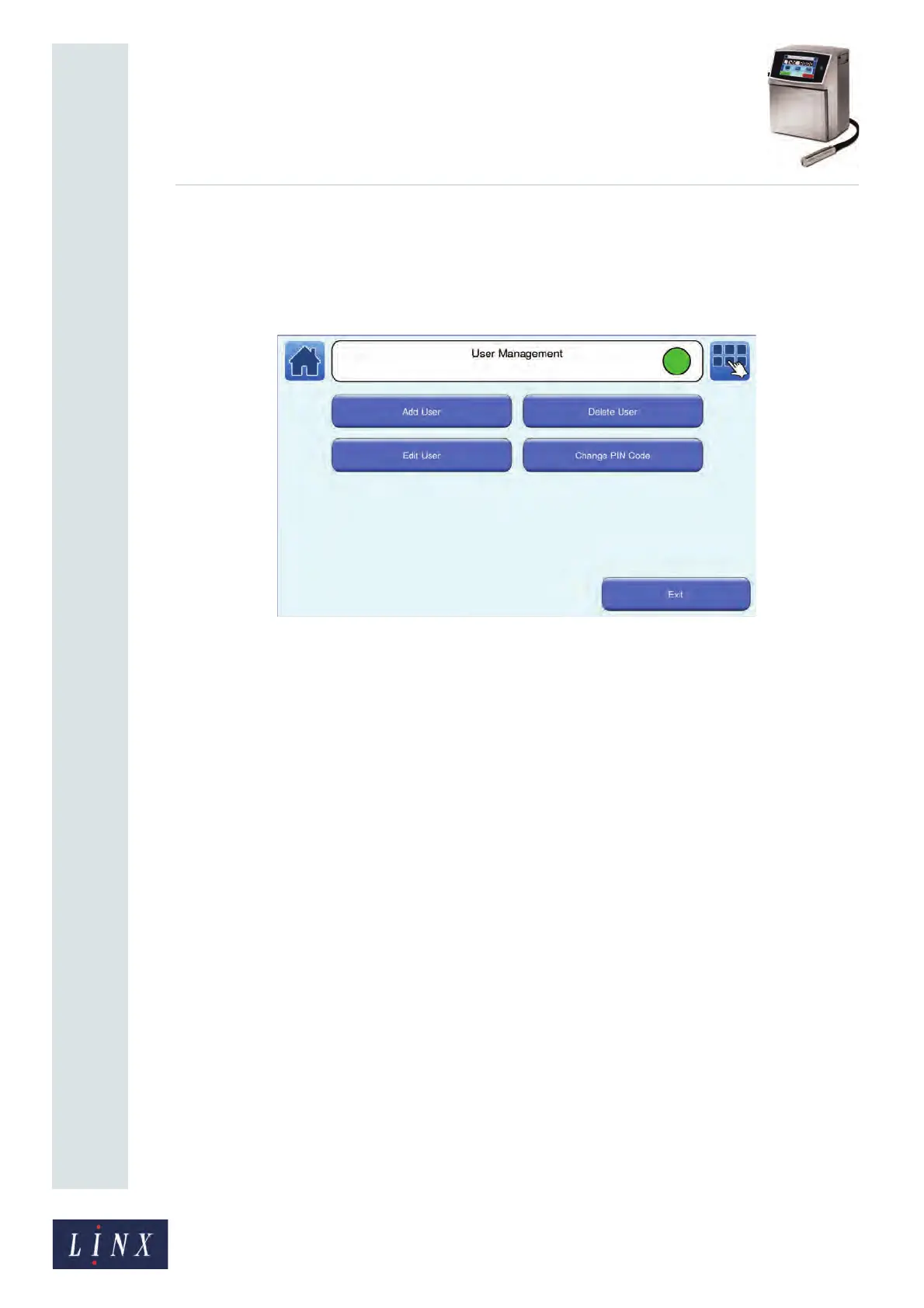 Refer to the Linx 8900 Quick Start Guide for information about printer users.