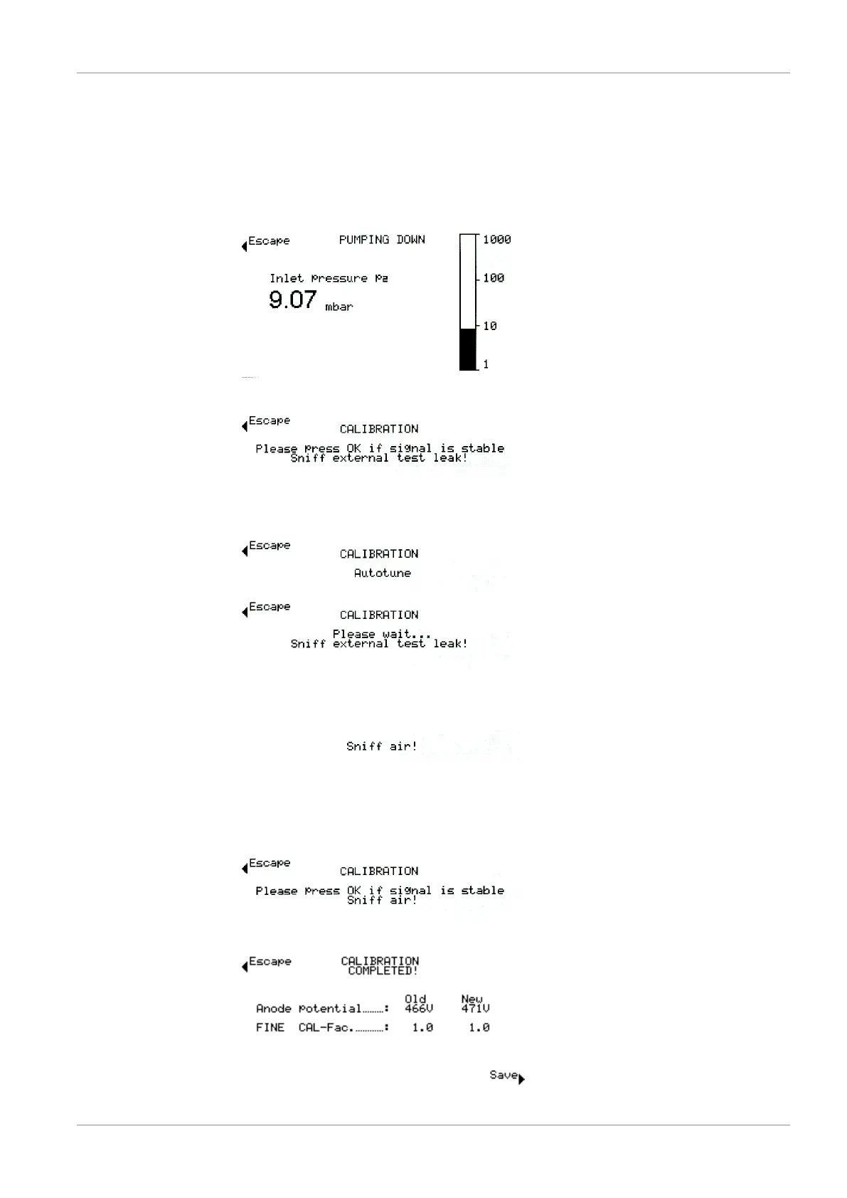 The calibration runs through the following sequences: