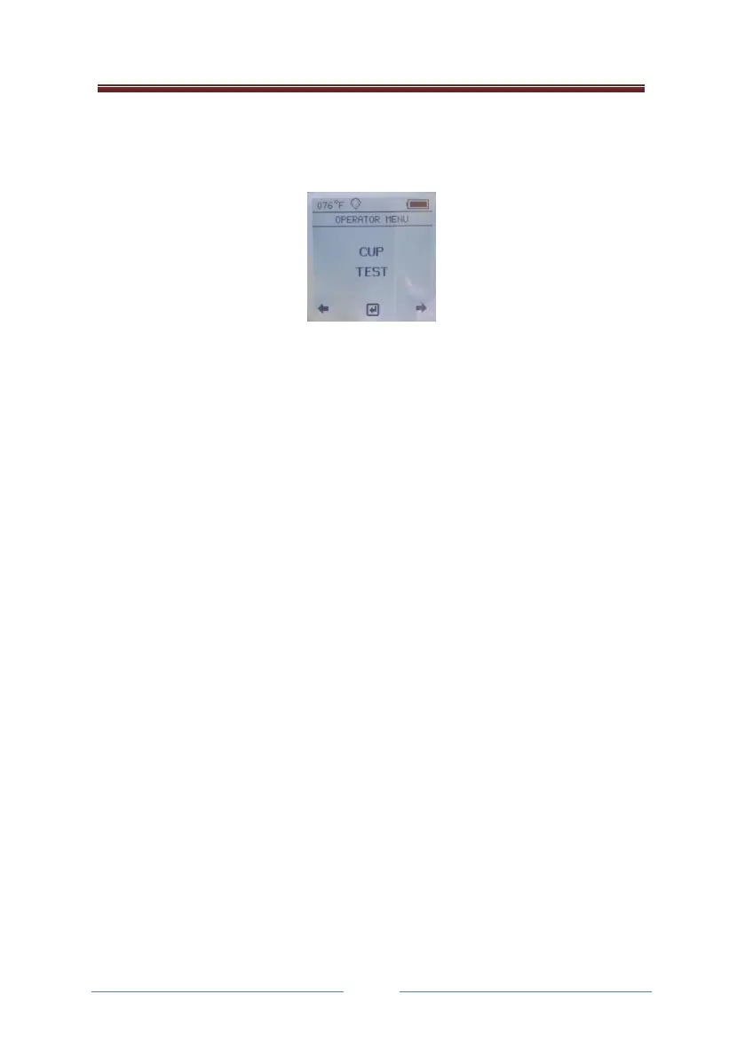 To carry out tests using a cup, select the cup test option. If this option does