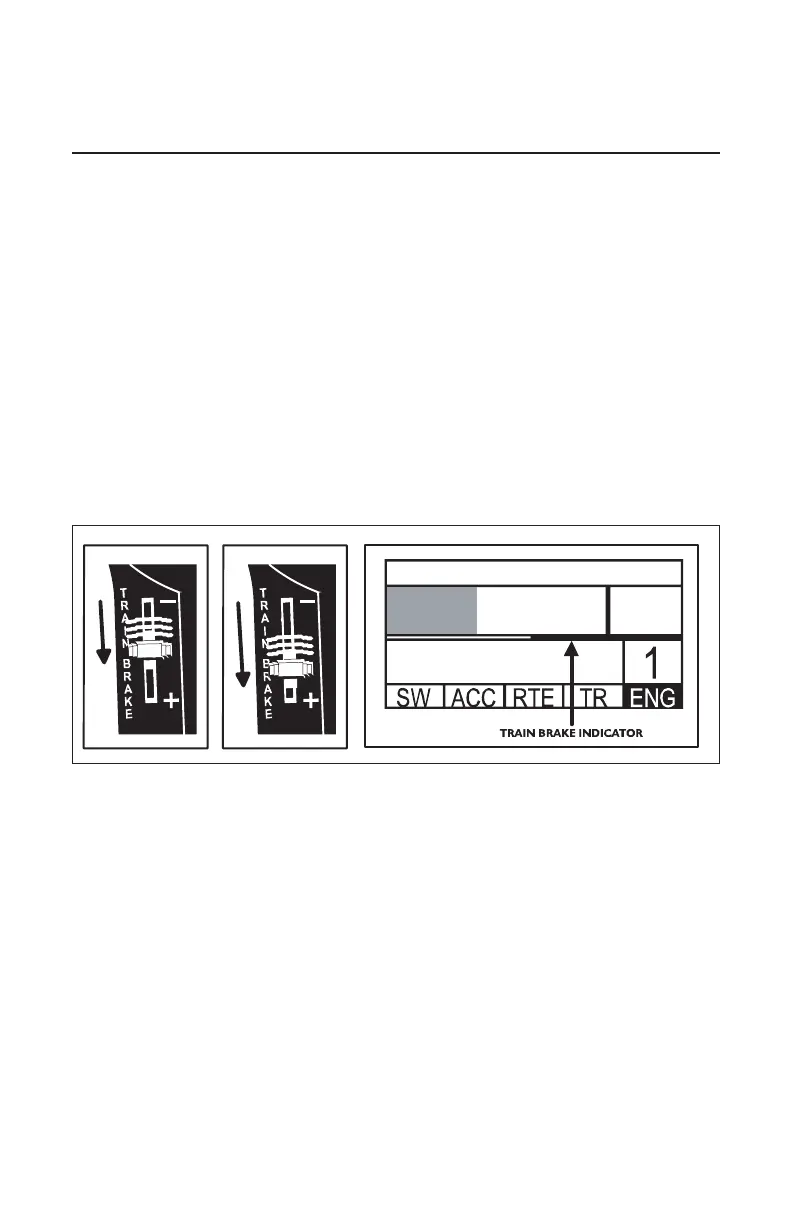 engine is moving down the rails at a medium speed. Notice the effect the Train Brake has