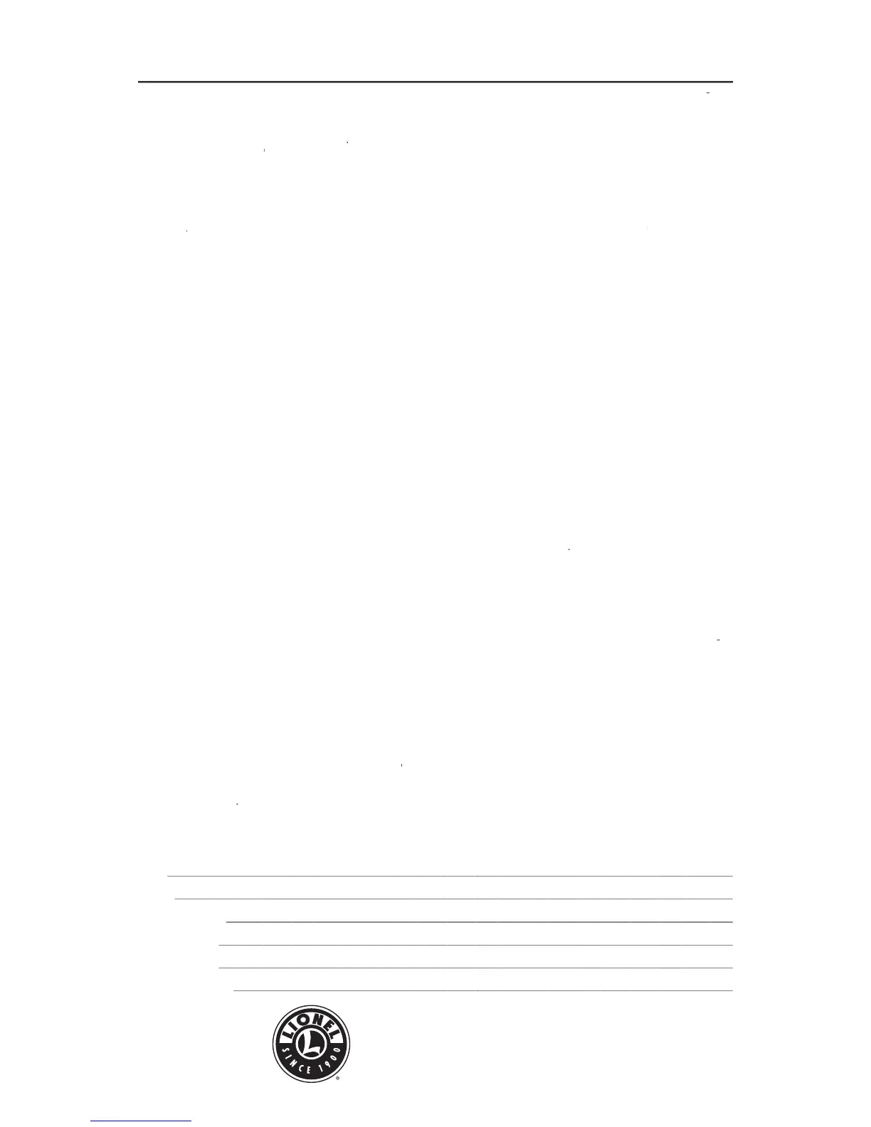 information (at the bottom of this page) to the nearest Lionel Authorized Service Station. Your nearest Lionel Service Station