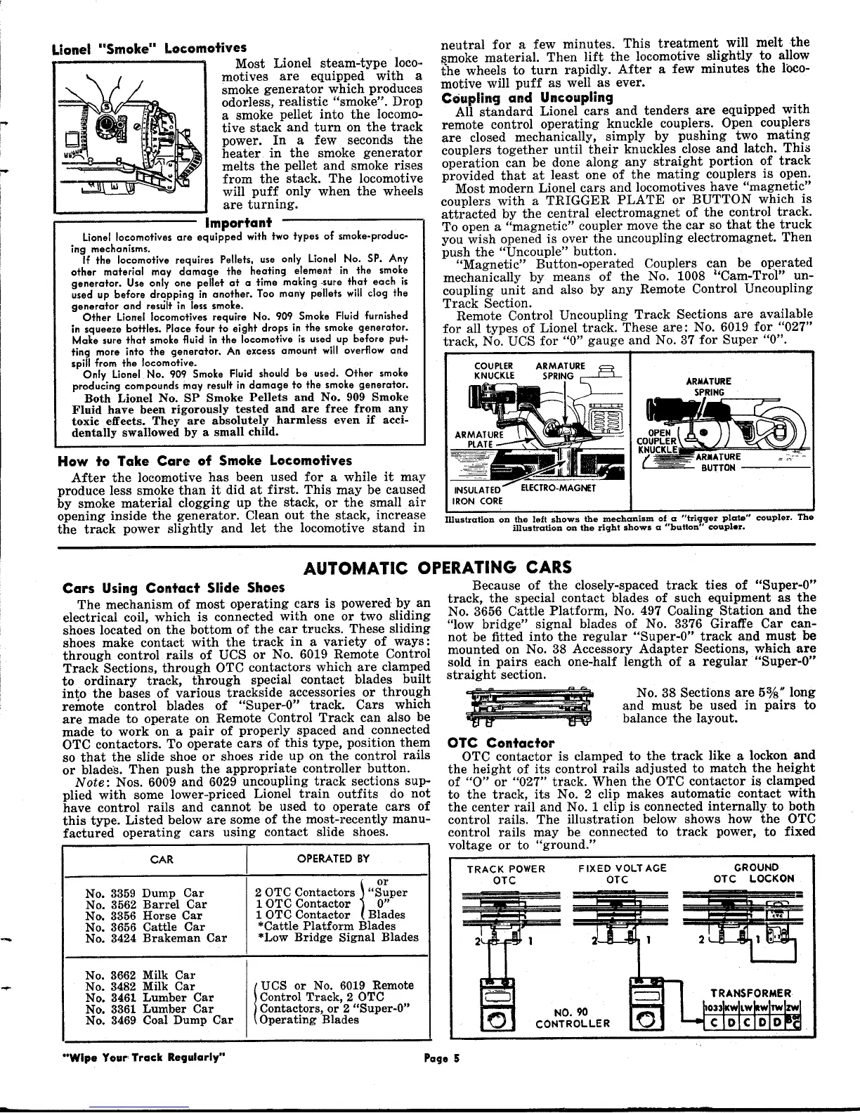 Other Lionel locomotives require No. 909 Smoke Fluid furnished