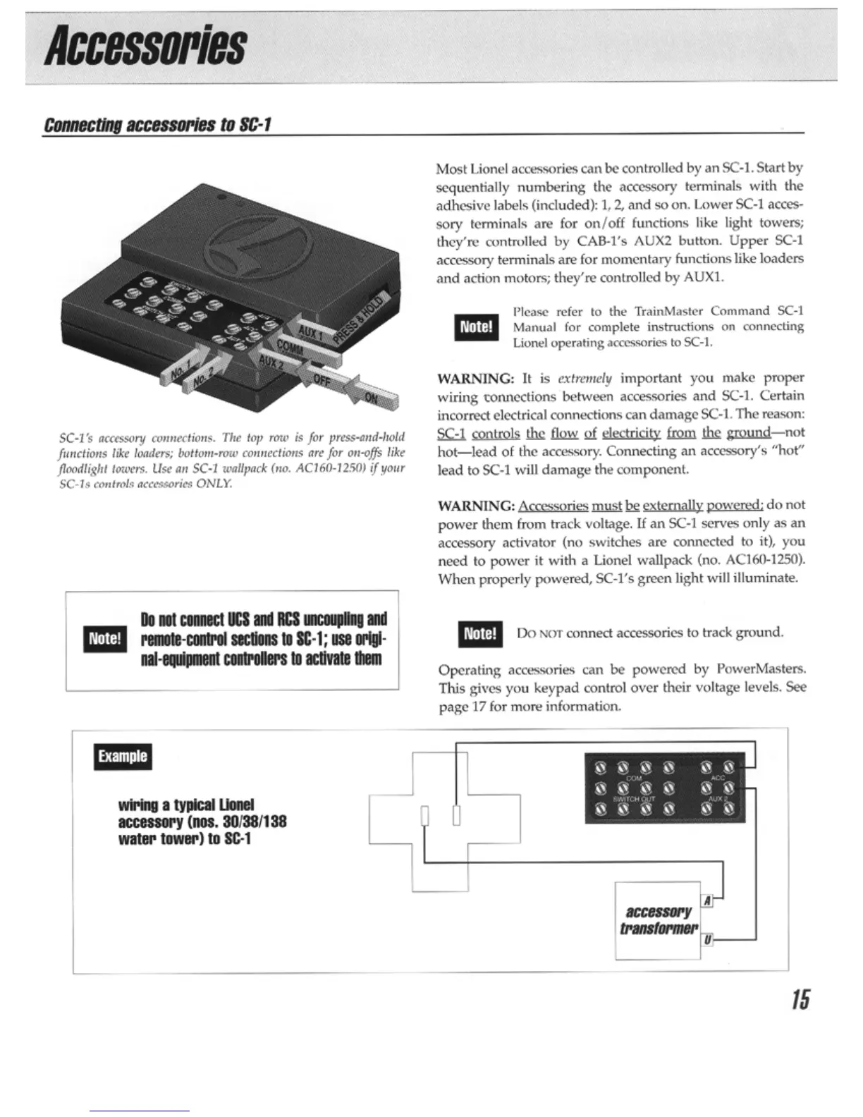 Lionel Trainmaster Command - Accessories; Connecting accessories to SC-1