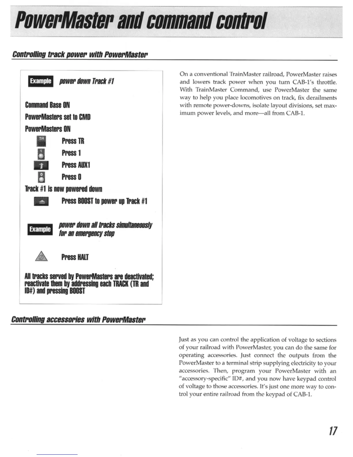 Lionel Trainmaster Command - PowerMaster and command control; Controlling track power with PowerMaster