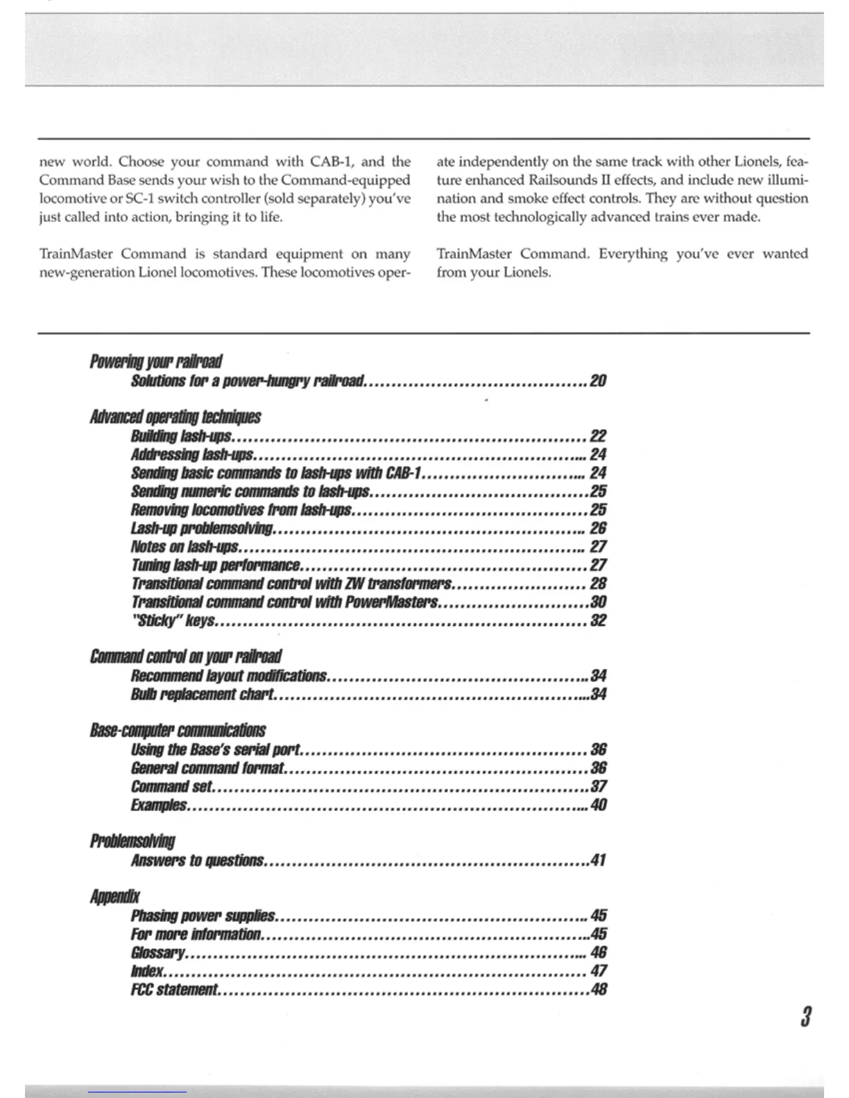 Lionel Trainmaster Command - Advanced operating techniques; Building lash-ups; Base-computer communications
