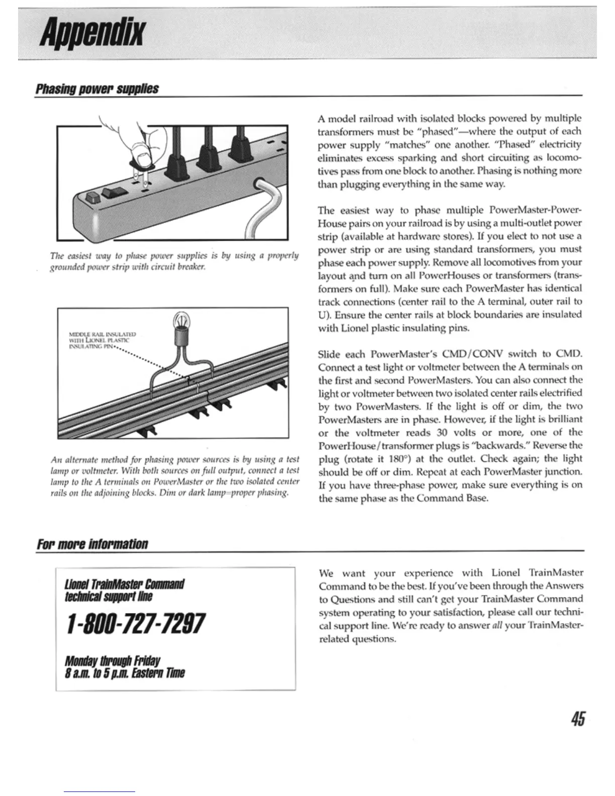 Lionel Trainmaster Command - Appendix; Phasing power supplies