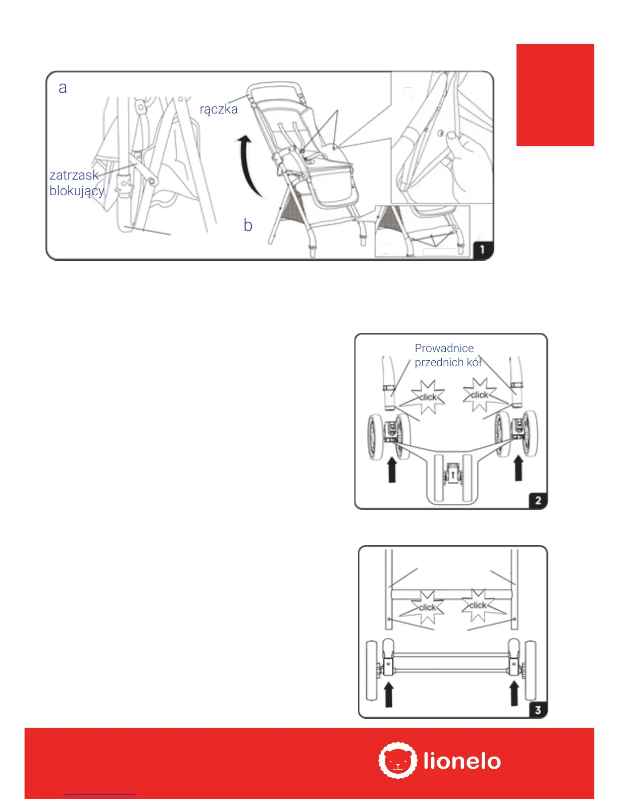 b. Podnieść rączkę do góry, a tylną blokadę do dołu.