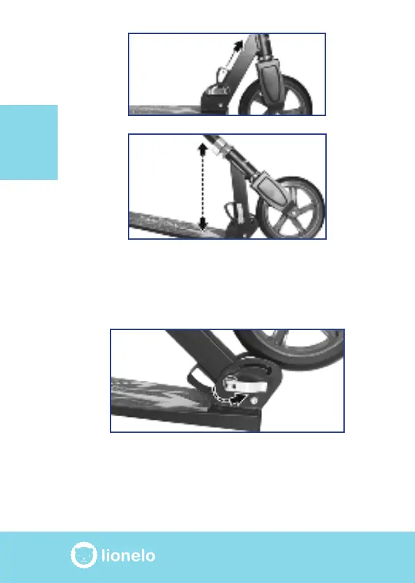 Pull up the retaining bracket and fold the scooter’s frame. The