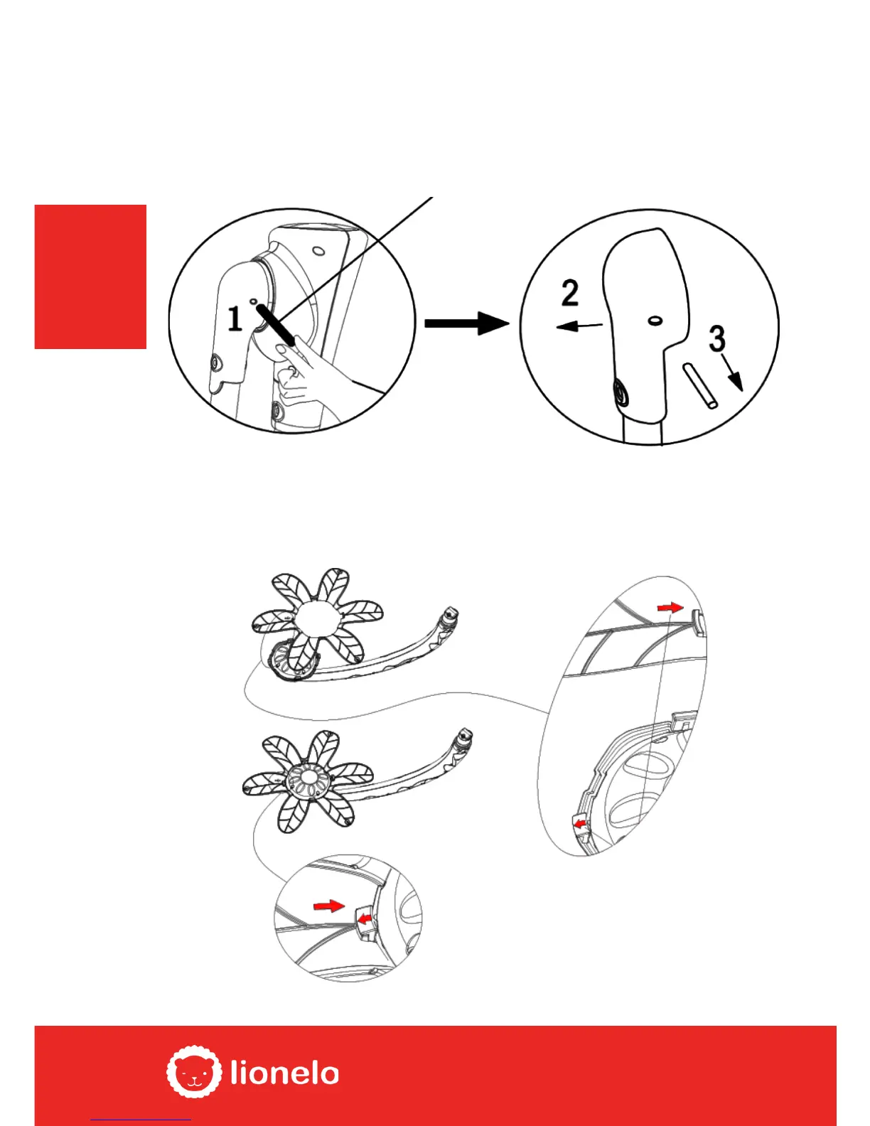 5. To detach the arms from the frame, use a thin tool up to