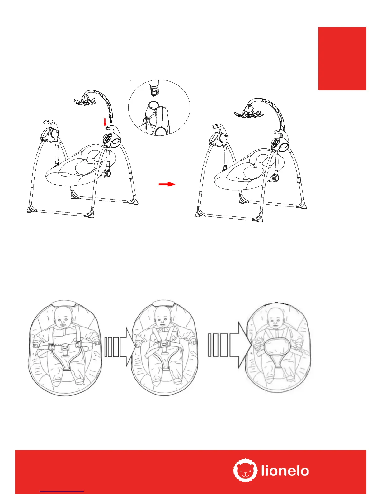 7. Montaż pałąka karuzeli. Wsuń końcówkę pałąka