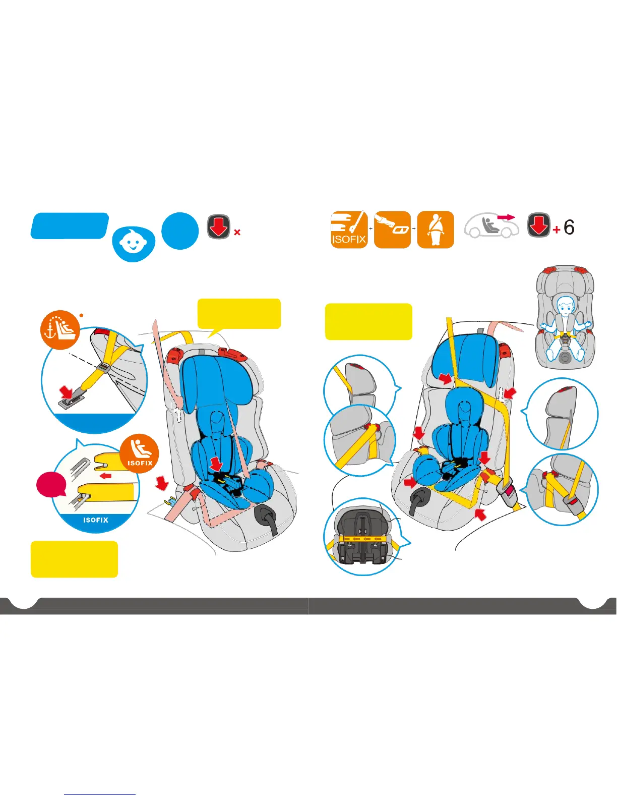 Użyj 3-punktowego połączenia pasa bezpieczeństwa + złącze ISOFIX do