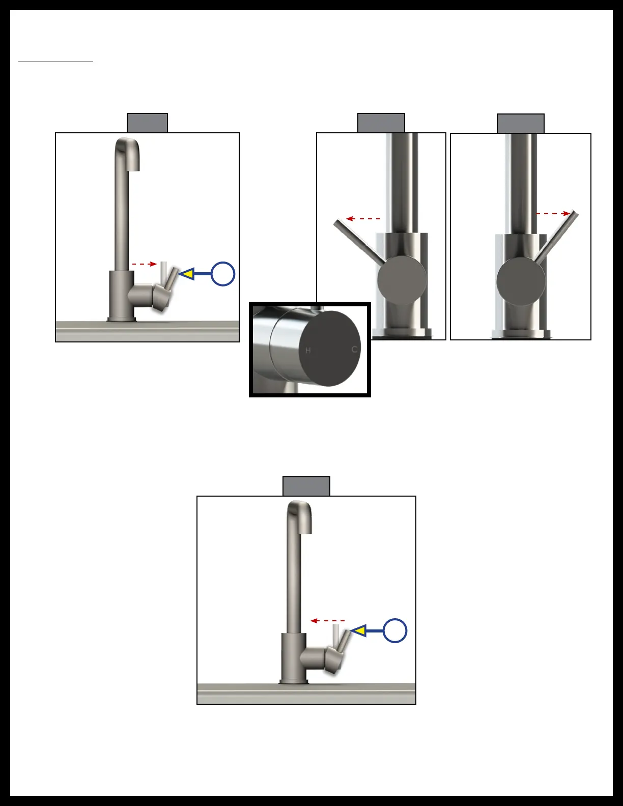 Note: Located on the front of the lever is a “H” for hot water and a “C” for cold water. Move the lever in the