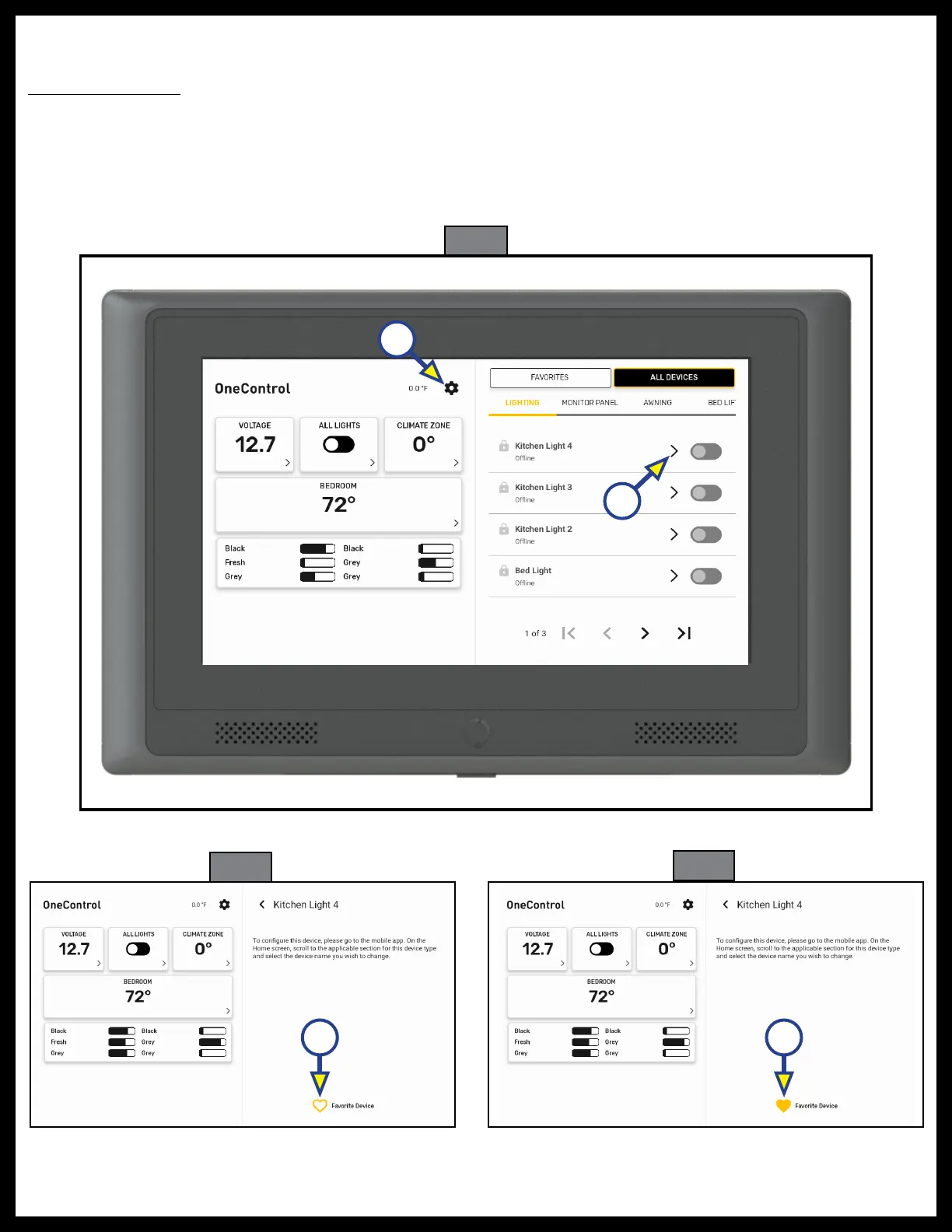Lippert Components OneControl Touch Panel 3.0 OCTP - Settings; Setting Favorites