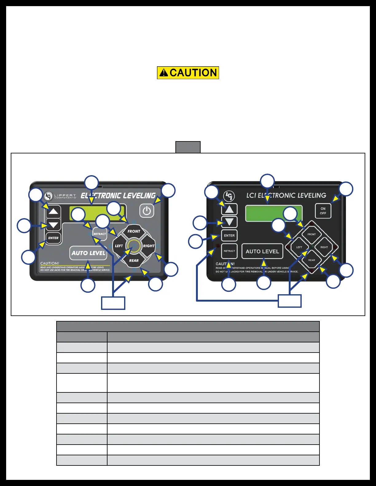 4. Make sure all persons, pets and property are clear of the 5th Wheel while the leveling system is in operation.