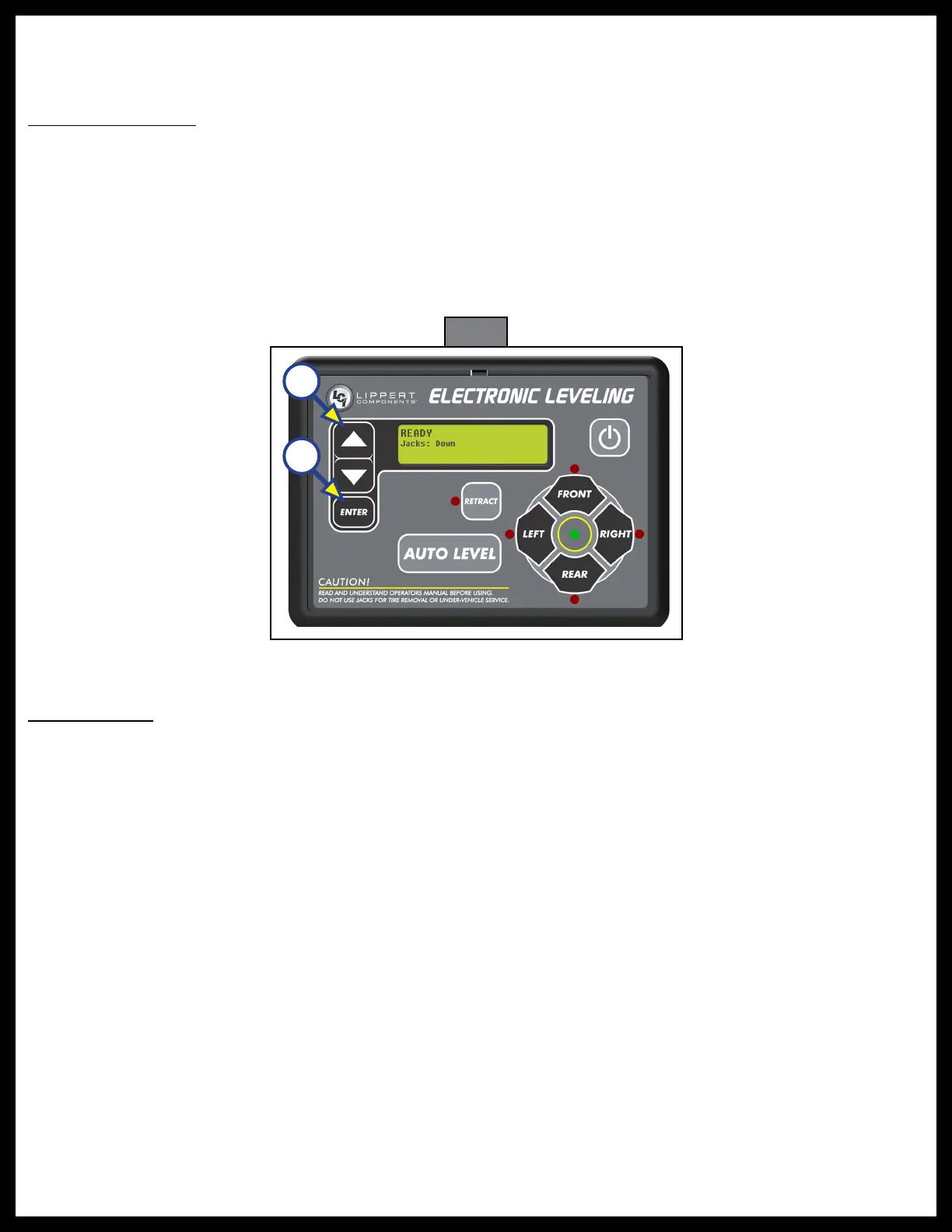 NOTE: If the jacks do not retract, an error should display on the LCD display. This is typically caused by a