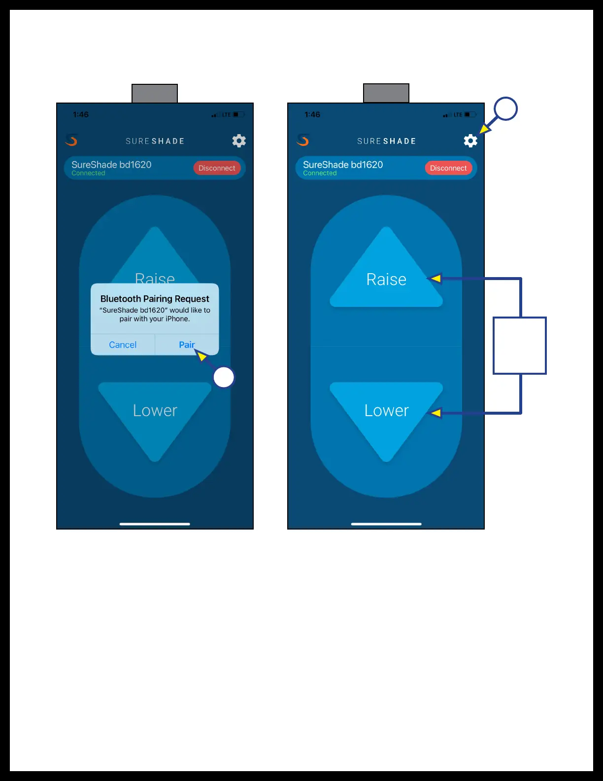 J. The controller and the paired smart device are now connected and the Raise and Lower buttons