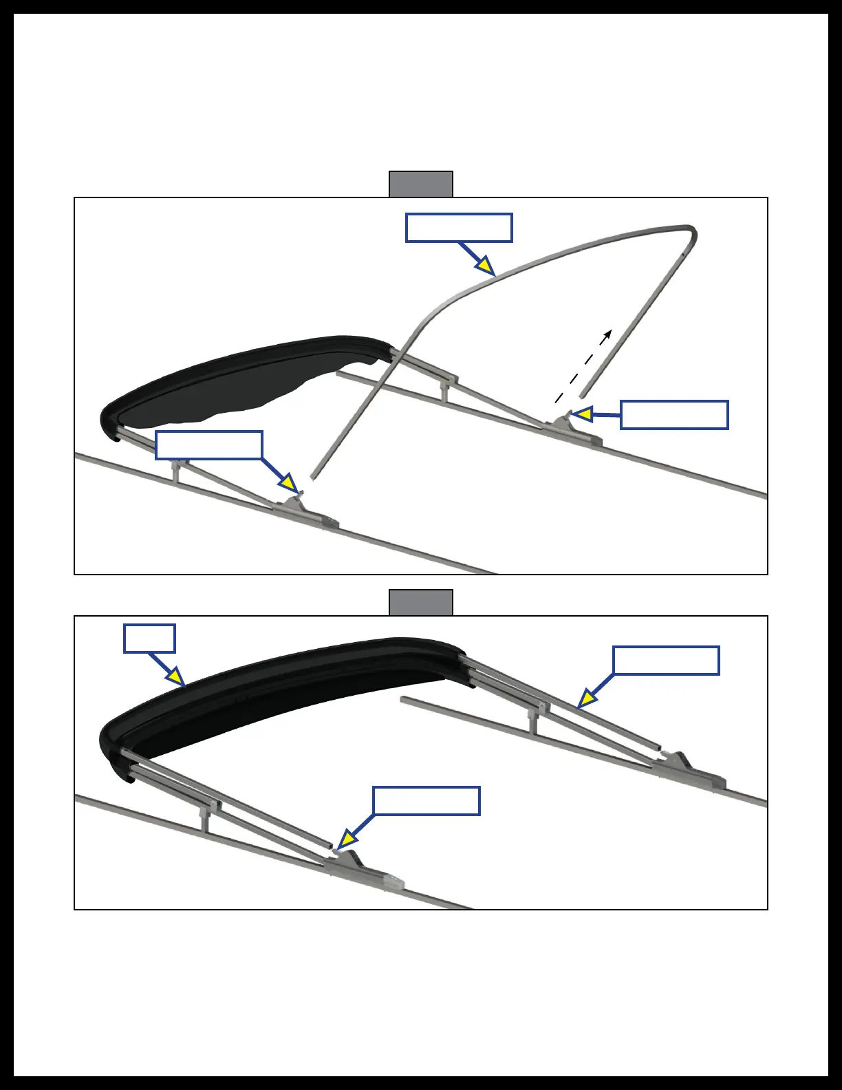 9. Zip the bimini top's front pocket over the loose front frame to help hold the frame in-place.