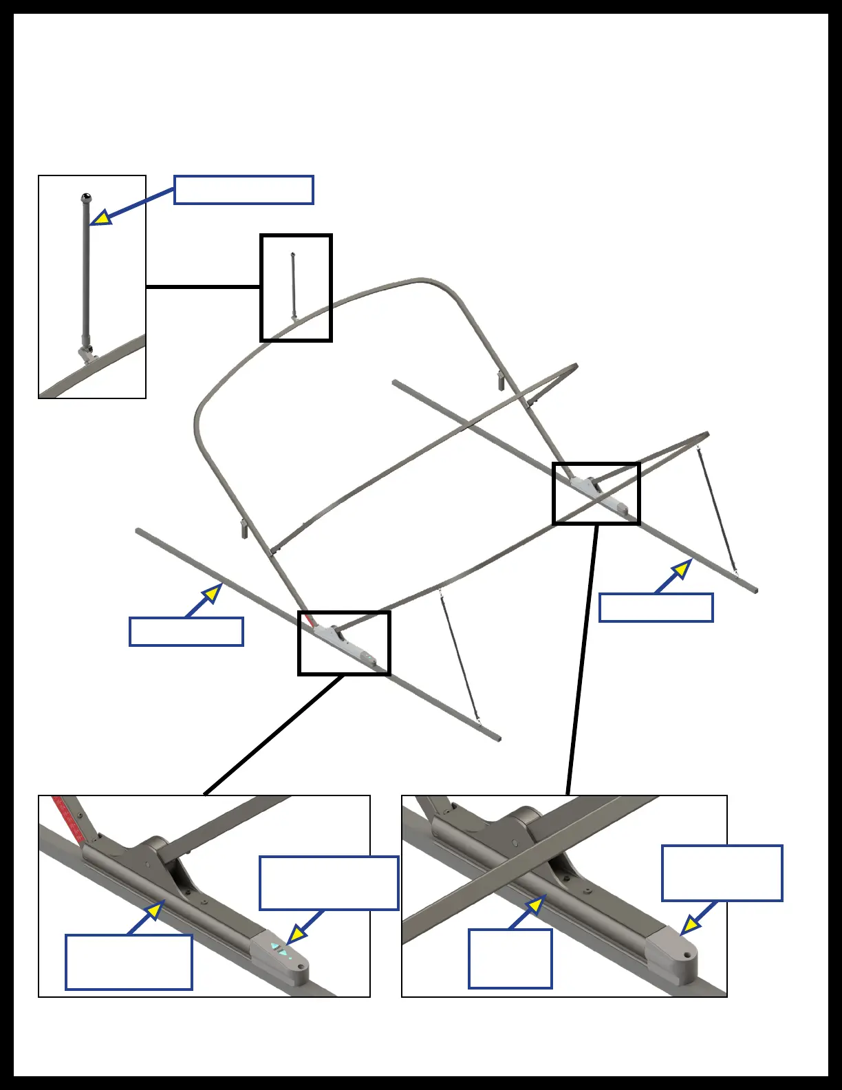 Two adjustable front support straps provide additional tension to the bimini top to help prevent vibration of