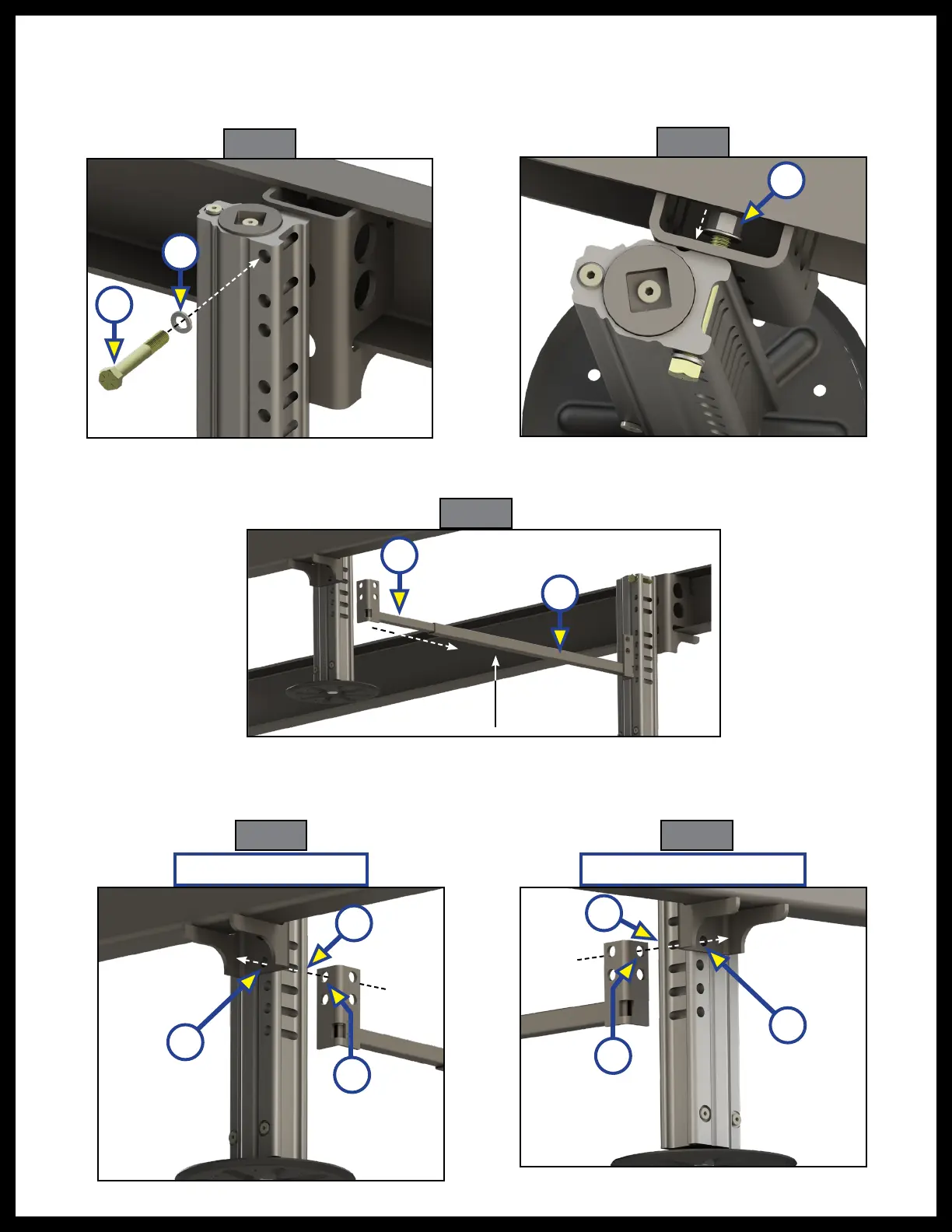 NOTE: Do not torque bolts at this time as they may need to allow the jacks to swing slightly for adjustment.