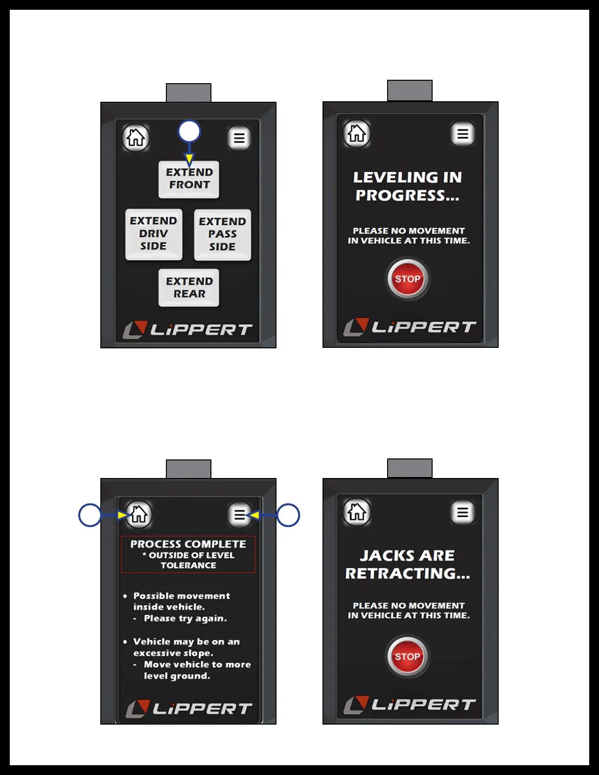 5. During the, “Auto Level” process, (Fig. 49B), control sensed movement in the coach during leveling