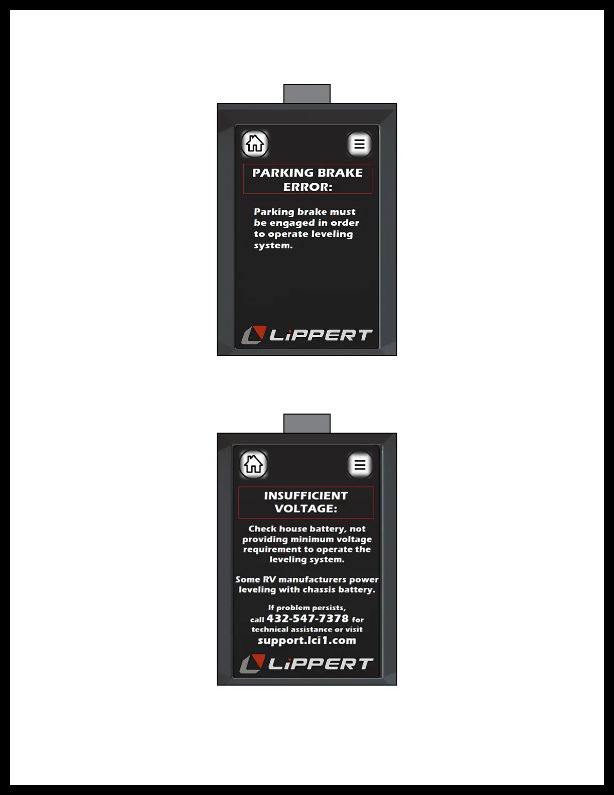 8. Figure 56, "Insufficient Voltage", screen may be prompted when the control is receiving